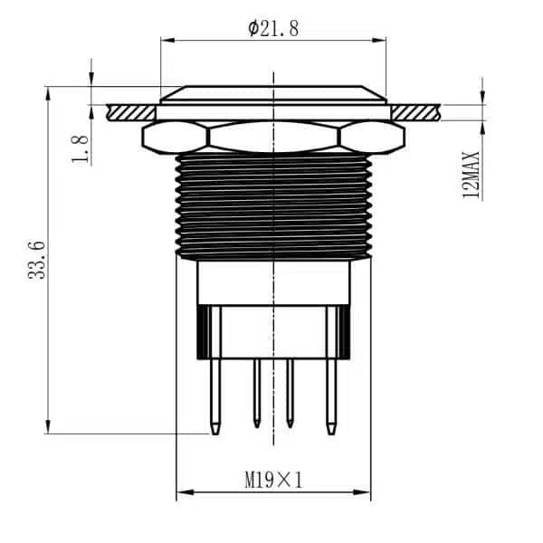 Der Drucktaster DIOH-S1GQ-D19C ist für Anwendungen mit hoher Strombelastung konzipiert und überzeugt durch eine robuste Bauweise.