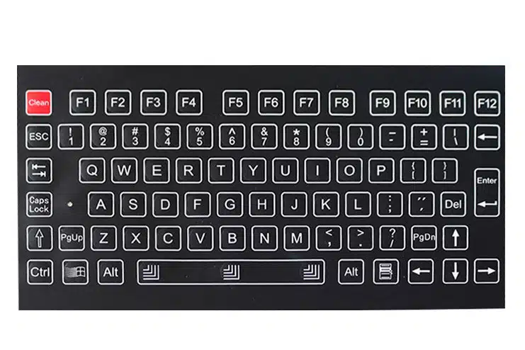Die Hygienetastatur NHKT-D272-FN ist eine kompakte, robuste Folientastatur auf einer 3 mm starken Aluminiumplatte, entwickelt für den Fronteinbau in industriellen, medizinischen oder hygienisch sensiblen Anwendungen. Mit 78 Tasten und einem kundenspezifischen Sprachlayout bietet sie eine zuverlässige Eingabelösung für Steuerungen, Maschinen und Bedienfelder.