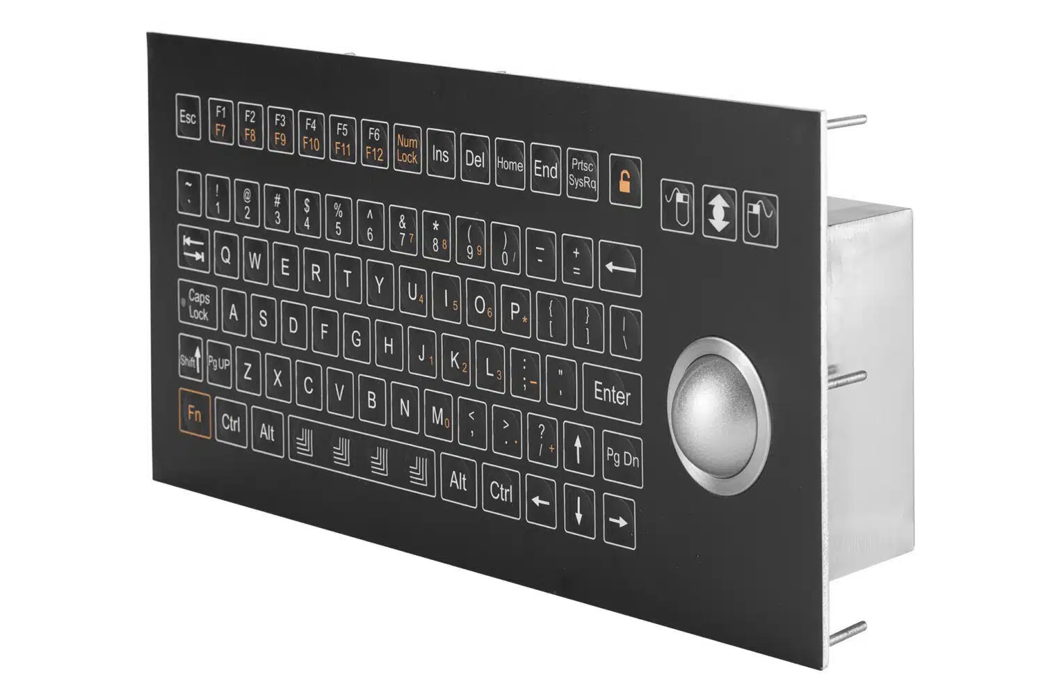 Die Hygienetastatur NHKT-D333-OTB-FN ist eine robuste Folientastatur mit integriertem optischem Trackball, die speziell für den Einsatz in hygienisch sensiblen Bereichen wie der Lebensmittelindustrie, der pharmazeutischen Produktion, Reinräumen und medizinischen Einrichtungen entwickelt wurde. Mit ihren großzügigen Abmessungen von 333 x 150 mm bietet sie ein vollständiges Tastaturlayout mit 81 Tasten und ermöglicht durch den integrierten 38-mm-Trackball eine präzise Cursorsteuerung, wodurch sie besonders für Anwendungen geeignet ist, bei denen eine Maus nicht verwendet werden kann oder soll.