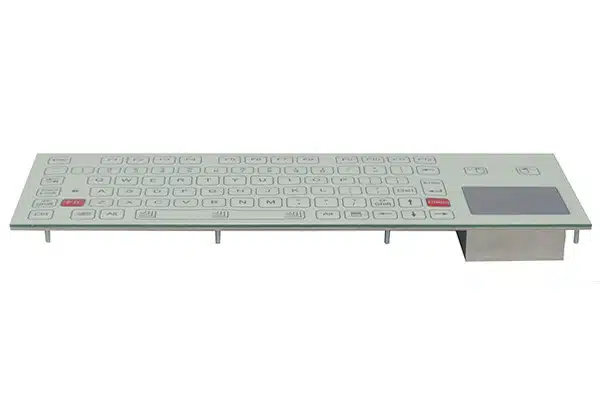Die Tastatur verfügt über einen definierten Schaltweg von 0,45 mm und eine taktile Betätigungskraft von 3,5 N ±0,2 N, was ein präzises und angenehmes Tippgefühl ermöglicht. Die Tastenbeschriftung erfolgt mittels Lasergravur oder Ätzung, wodurch eine dauerhafte Lesbarkeit auch bei intensiver Nutzung gewährleistet ist. Die Oberfläche besteht aus einer antimikrobiellen, kratzfesten Polyesterfolie, die beständig gegenüber den meisten Chemikalien und Flüssigkeiten ist. Ein integrierter CLEAN-Key ermöglicht die temporäre Deaktivierung der Tastatur zur einfachen Reinigung.