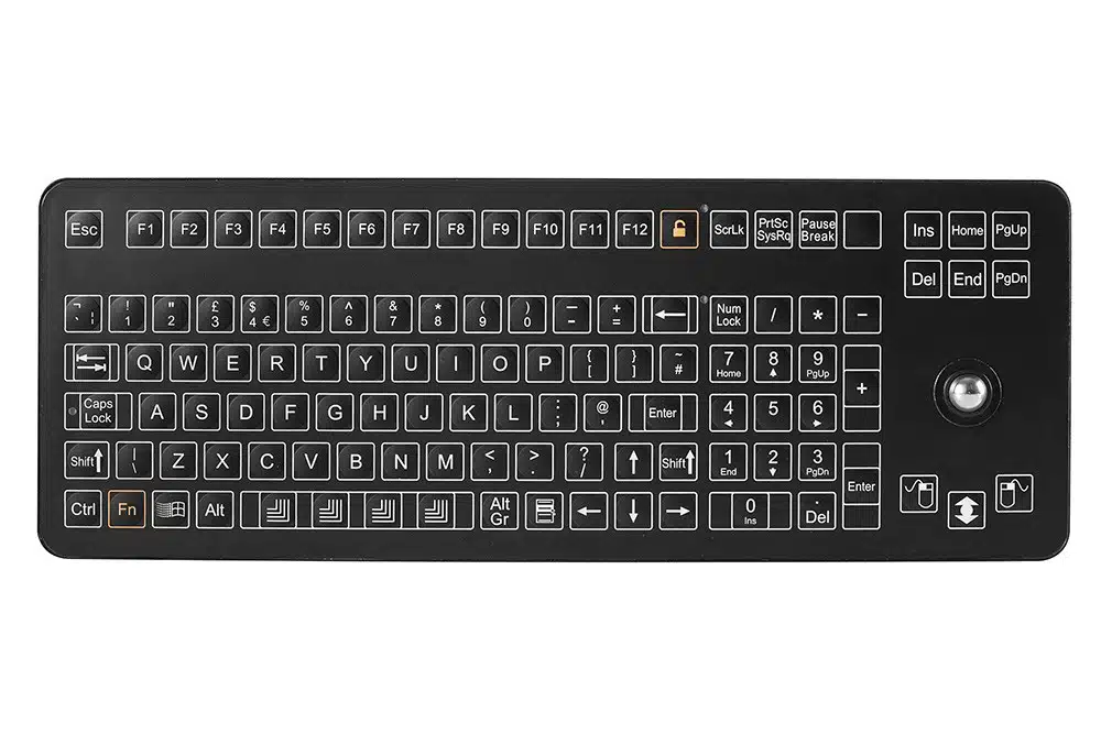 Hygienetastatur NHKT-D396-OTB-KP-FN-DT – Desktop-Folientastatur mit 25-mm-Trackball