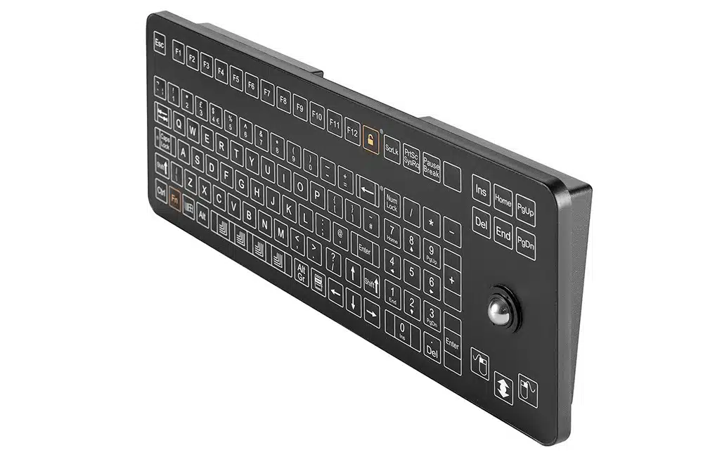 Die Hygienetastatur NHKT-D396-OTB-KP-FN-DT ist eine robuste Desktop-Folientastatur mit integriertem 25-mm-Trackball, die speziell für den Einsatz in hygienisch sensiblen Bereichen wie der Lebensmittelindustrie, der pharmazeutischen Produktion, Reinräumen und medizinischen Einrichtungen entwickelt wurde. Mit ihren großzügigen Abmessungen von 399 x 148,8 mm bietet sie ein vollständiges Tastaturlayout mit 109 Tasten und ermöglicht durch den integrierten Trackball eine präzise Cursorsteuerung, wodurch sie besonders für Anwendungen geeignet ist, bei denen eine Maus nicht verwendet werden kann oder soll.