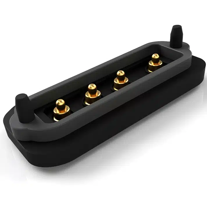 Der Federkontaktstecker SVPC-P5320MF01-04A210HT mit 4 Pins ist ein wasserdichter Federkontaktstecker mit Schutzklasse IPX7.