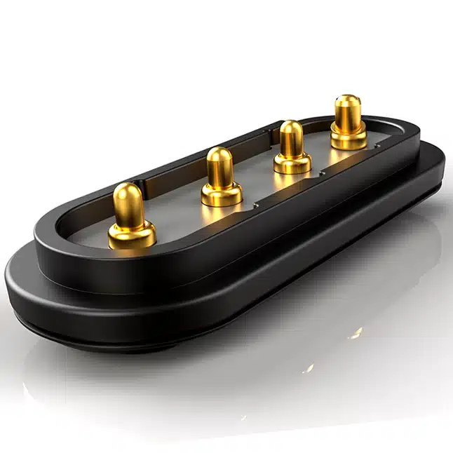 Der Federkontaktstecker SVPC-P5875MF01-04A250HT mit 4 Pins ist ein wasserdichter Federkontaktstecker mit Schutzklasse IPX7.