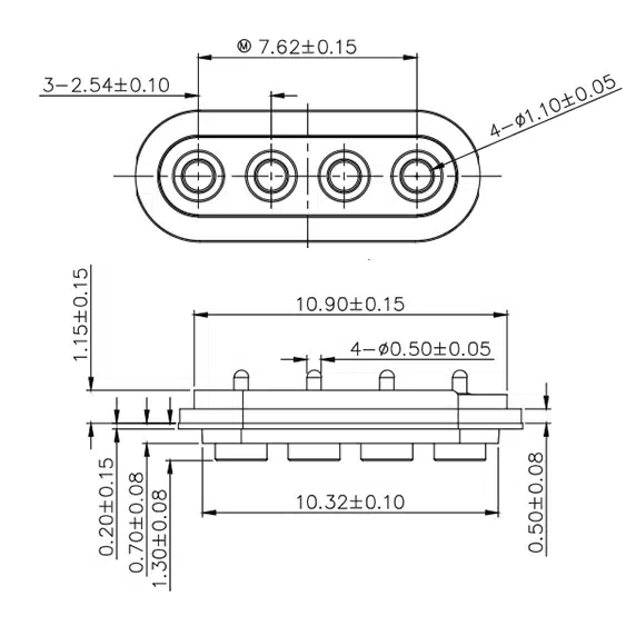 Zeichnung Wasserdichter Federkontaktstecker SVPC-P5875MF01-04A250HT