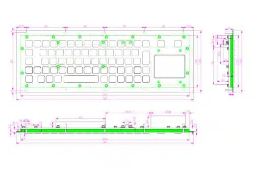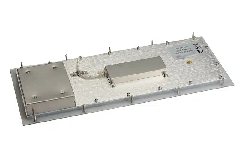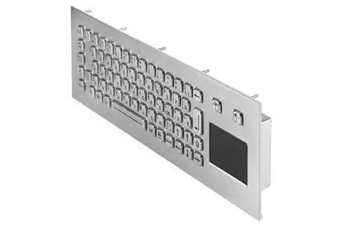 Die Tastatur ist mit präzise gefertigten Edelstahltasten ausgestattet, die einen definierten Schaltweg von 1,5 mm und eine taktil spürbare Betätigungskraft von 1,5 N ± 0,2 N aufweisen. Das sorgt für ein präzises, angenehmes Bediengefühl auch bei intensiver Nutzung. Das integrierte Touchpad ermöglicht eine präzise Cursorsteuerung direkt auf der Tastatur – ideal für Anwendungen, bei denen kein externes Eingabegerät eingesetzt werden kann oder hohe Hygieneanforderungen bestehen.