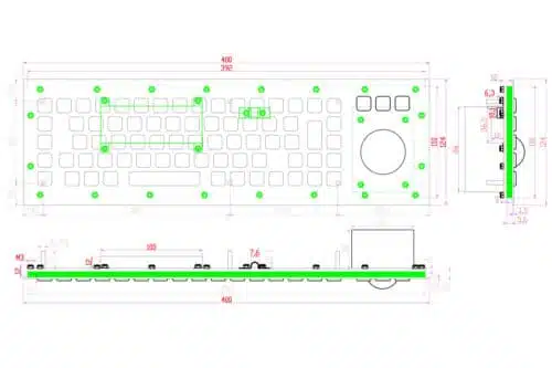 Die Metalltastatur NHKT-A400-TB-DWP ist eine hochwertige Edelstahl-Tastatur mit integriertem Trackball, entwickelt für den Fronteinbau in industriellen Steuerungen, Maschinen, Terminals und sicherheitsrelevanten Anwendungen. Sie vereint präzises Tastenfeedback, ergonomische Maussteuerung und maximale Robustheit in einem kompakten Design.