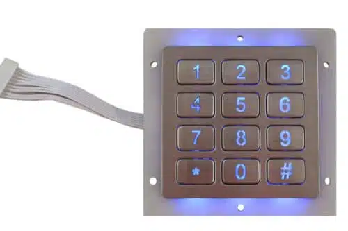 Edelstahl-Keypad NHKT-B86-12KP-AC mit AC-Stecker, IP65-Schutz und optionaler LED-Beleuchtung – robust, vandalismussicher und zuverlässig.