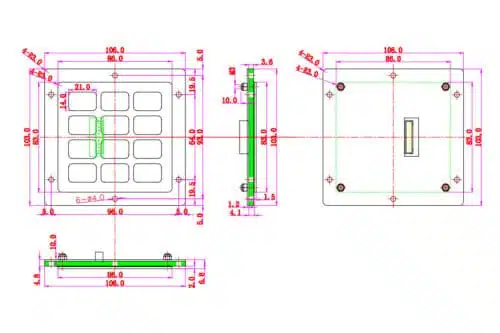 Mit Maßen von 86 × 83 mm und 12 präzise gefertigten Edelstahltasten liefert das Gerät eine platzsparende und leistungsfähige Eingabeoption. Jede Taste arbeitet mit einem definierten Schaltweg von 0,45 mm und einer Betätigungskraft von 3,5 N ± 0,2 N, um ein präzises, direktes Bedienfeedback sicherzustellen.