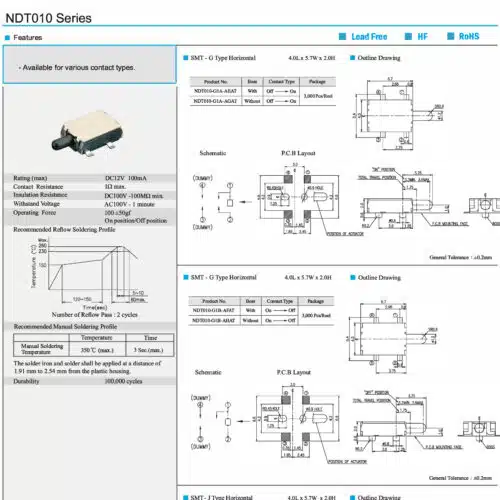 Mit Maßen von 4,00 × 5,70 × 2,00 mm und einer Betätigungskraft von 100 gf bietet er ein definiertes, taktiles Feedback und eine präzise Auslösung. Die hohe Lebensdauer von bis zu 100000 Schaltzyklen macht ihn zu einer besonders zuverlässigen und kosteneffizienten Lösung. Unterschiedliche Montageoptionen (SMT) ermöglichen eine flexible Integration in verschiedenste Anwendungen.