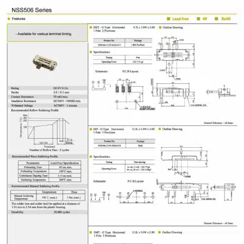 Spezifikationen Slide Switch NSS506-213N-BBBG1T