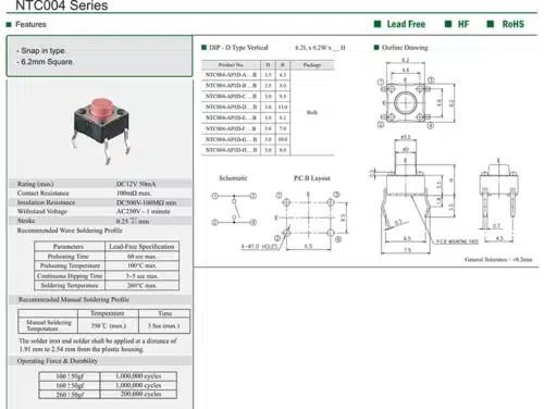 Spezifikationen Tact Switch NTC004-AP1D-E260B