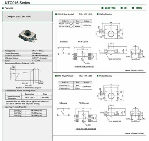 Spezifikationen Tact Switch NTC016-AB1G-A160T