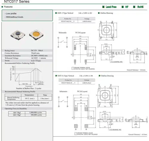 Spezifikationen Tact Switch NTC017-DA1J-D160T