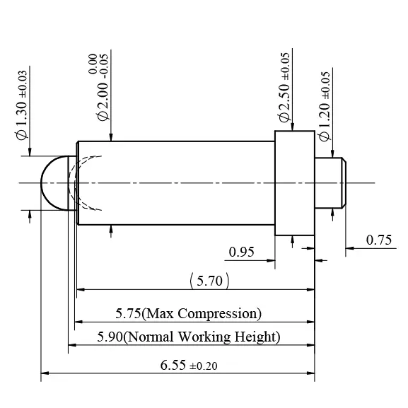 Technische Maße Federkontakt SVPC-P-P07567PH2