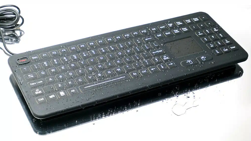 Die Silikontastatur NHKT-M399KP-TP-FN ist eine hochwertige Desktop-Tastatur mit integriertem Touchpad, entwickelt für den Einsatz in hygienisch sensiblen und industriellen Umgebungen. Ihre vollständig geschlossene Bauweise und die Schutzklasse IP68 machen sie staubdicht und gegen dauerhaftes Untertauchen in Wasser geschützt – perfekt für Anwendungen in der Medizintechnik, Lebensmittelverarbeitung oder in Laborbereichen, wo Reinigung und Desinfektion zum Alltag gehören.